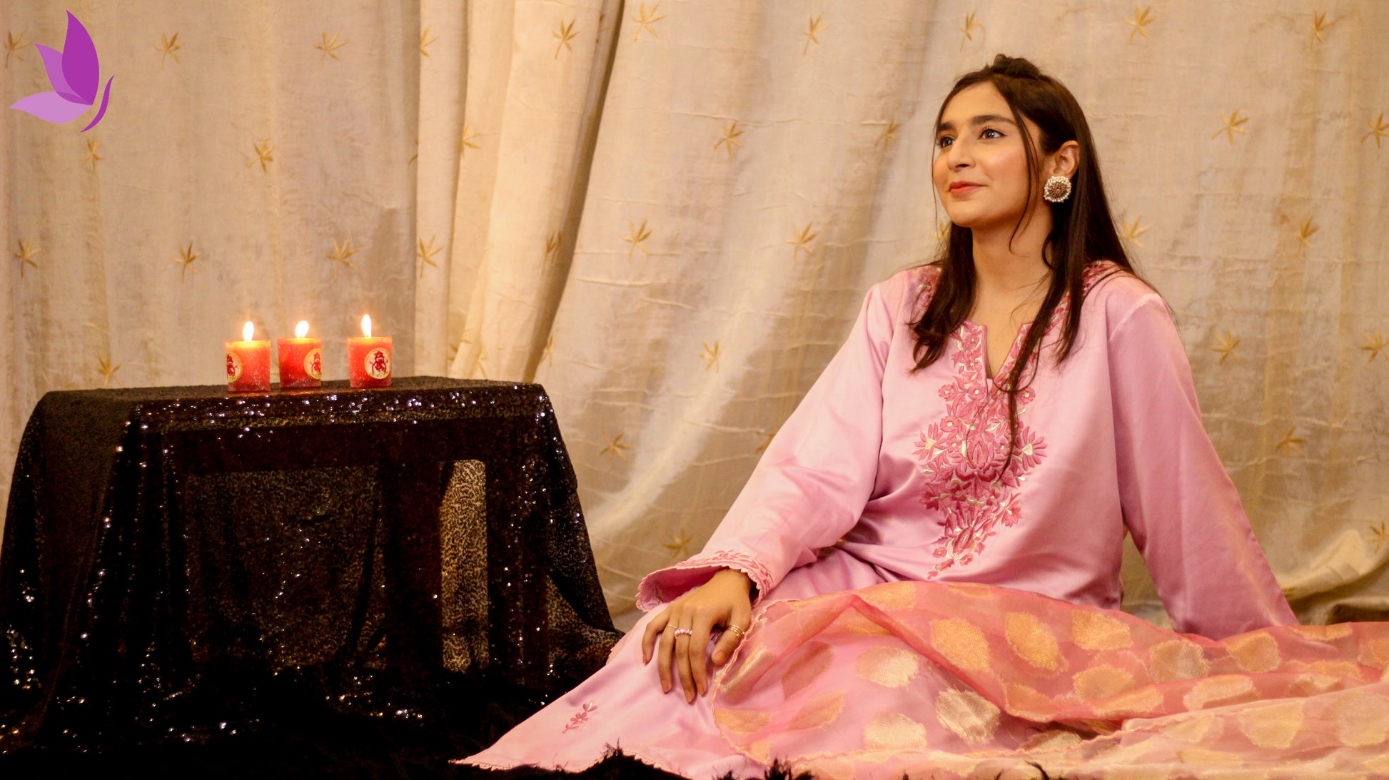 Embrace the essence of timeless femininity with our Blush Bloom embroidered two-piece set. This elegant ensemble, crafted in luxurious Korean silk, radiates sophistication with its soft blush-pink hue and intricate embroidery detailing. The delicately embroidered neckline and motifs across the front evoke classic charm, while the matching straight trousers complete the look with graceful balance.