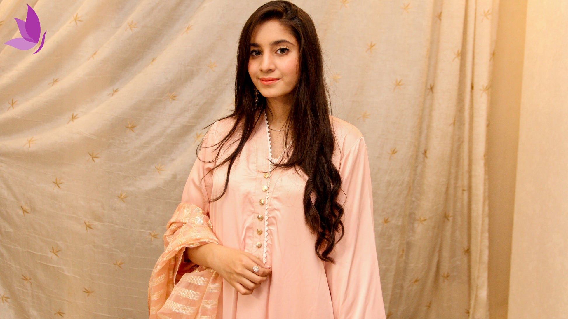 Soft, serene, and undeniably feminine — the Blush Petal Silk Set redefines quiet luxury. Rendered in a tender blush hue, this silk ensemble features delicate thread embroidery that flows organically across the neckline and sleeves, celebrating modern femininity. A gold-striped dupatta adds a gentle shimmer, perfectly complementing the outfit’s pastel tones.