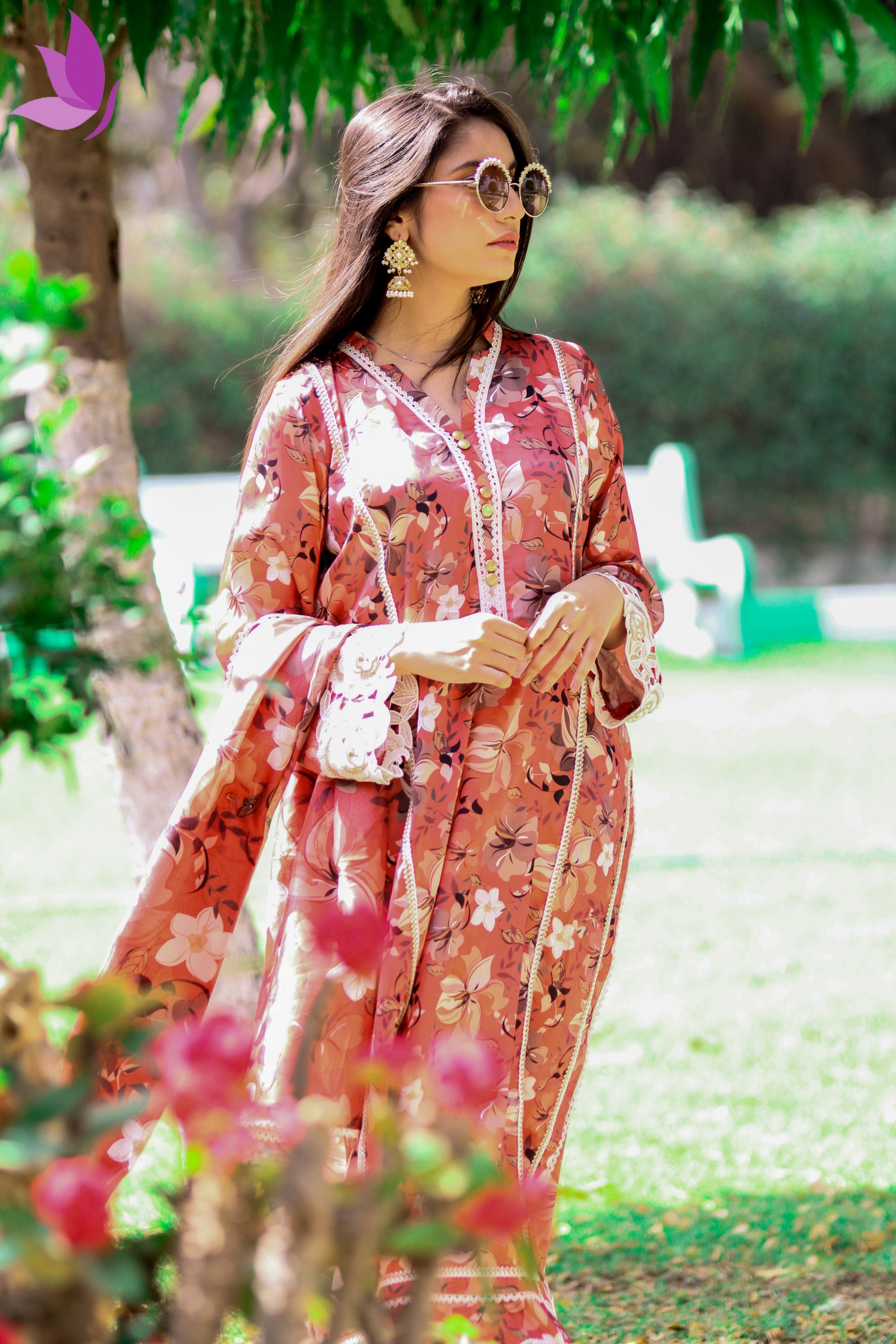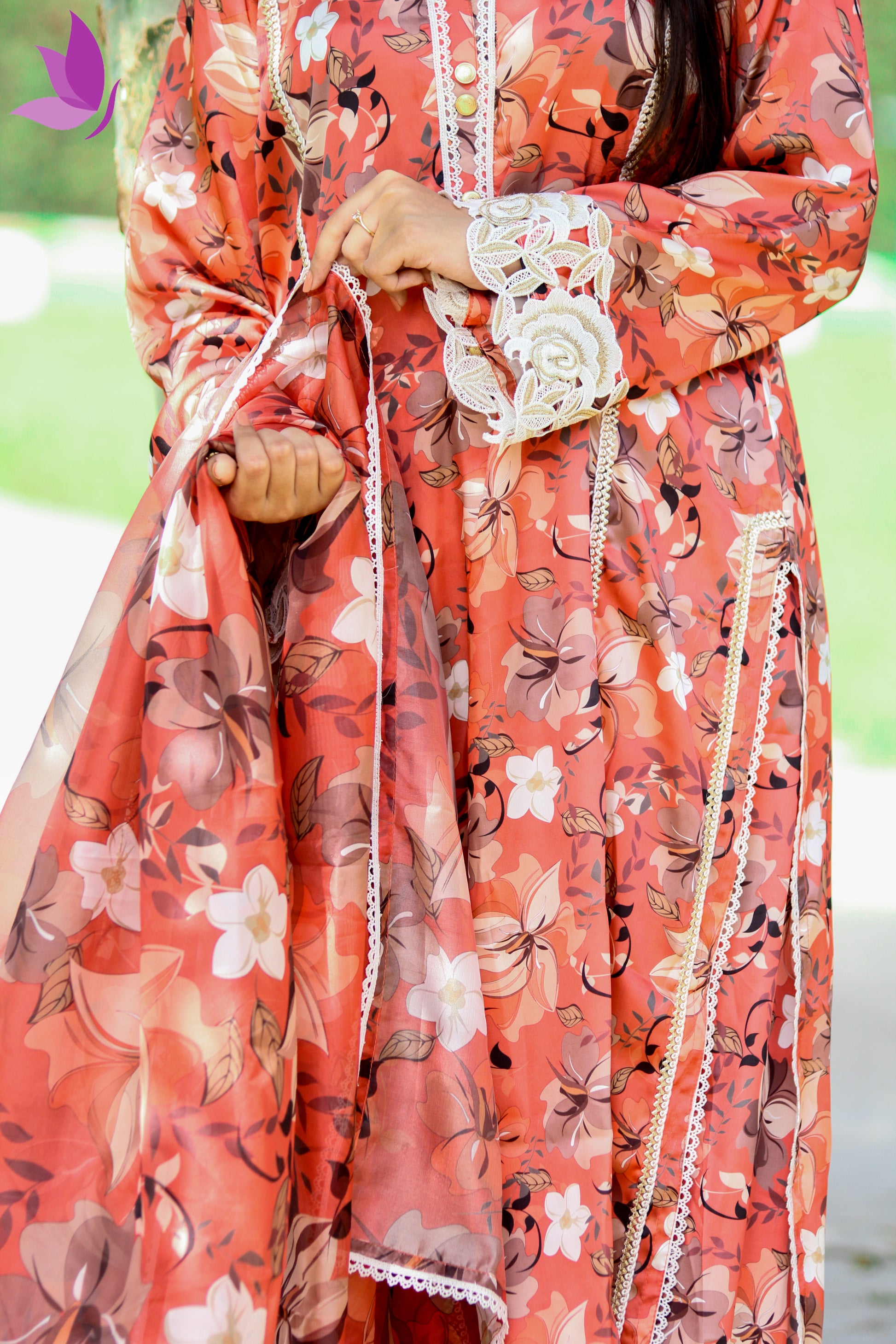 Step into timeless sophistication with the Ethereal Bloom Silk Ensemble, a celebration of modern femininity and classic eastern charm. Crafted from premium silk, this coral-toned outfit blooms with soft floral artistry — capturing the essence of luxury in every fold.