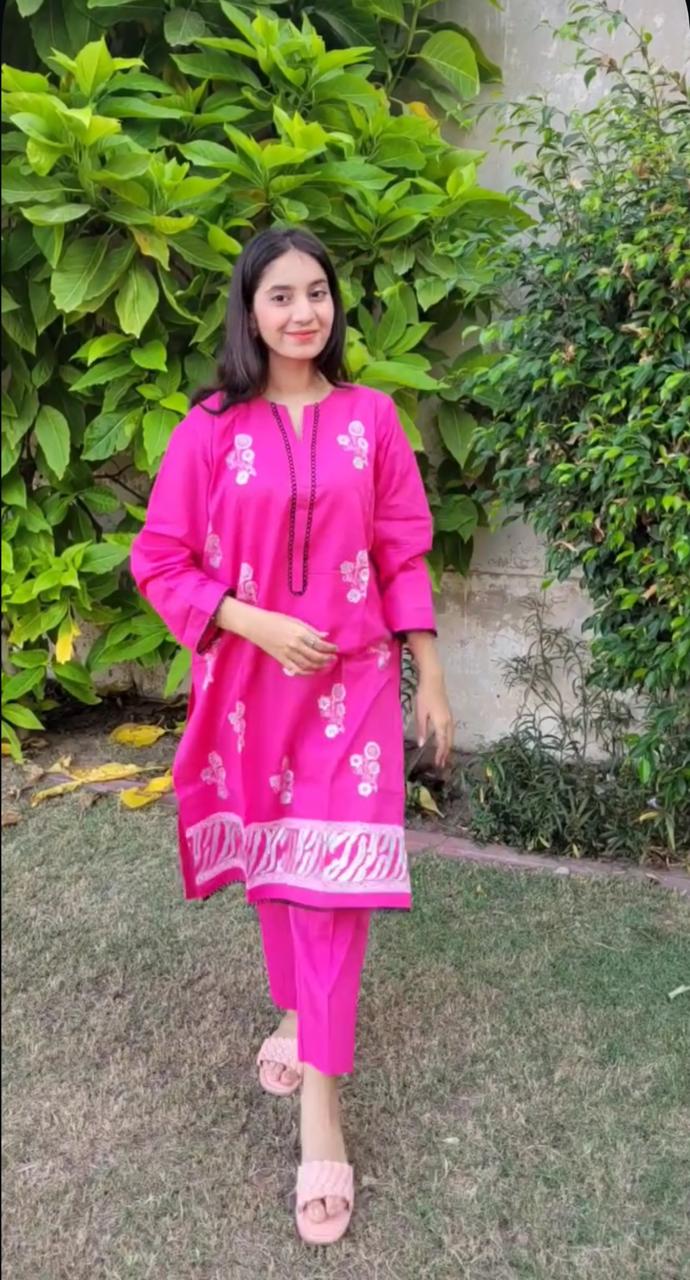 Radiate confidence and femininity in our Rosé Charm Embroidered 2-Piece, a delightful fusion of tradition and modern allure. This vibrant fuchsia pink cotton ensemble is brought to life with delicate white and blush floral embroidery, adding a soft romantic touch to its bold hue.