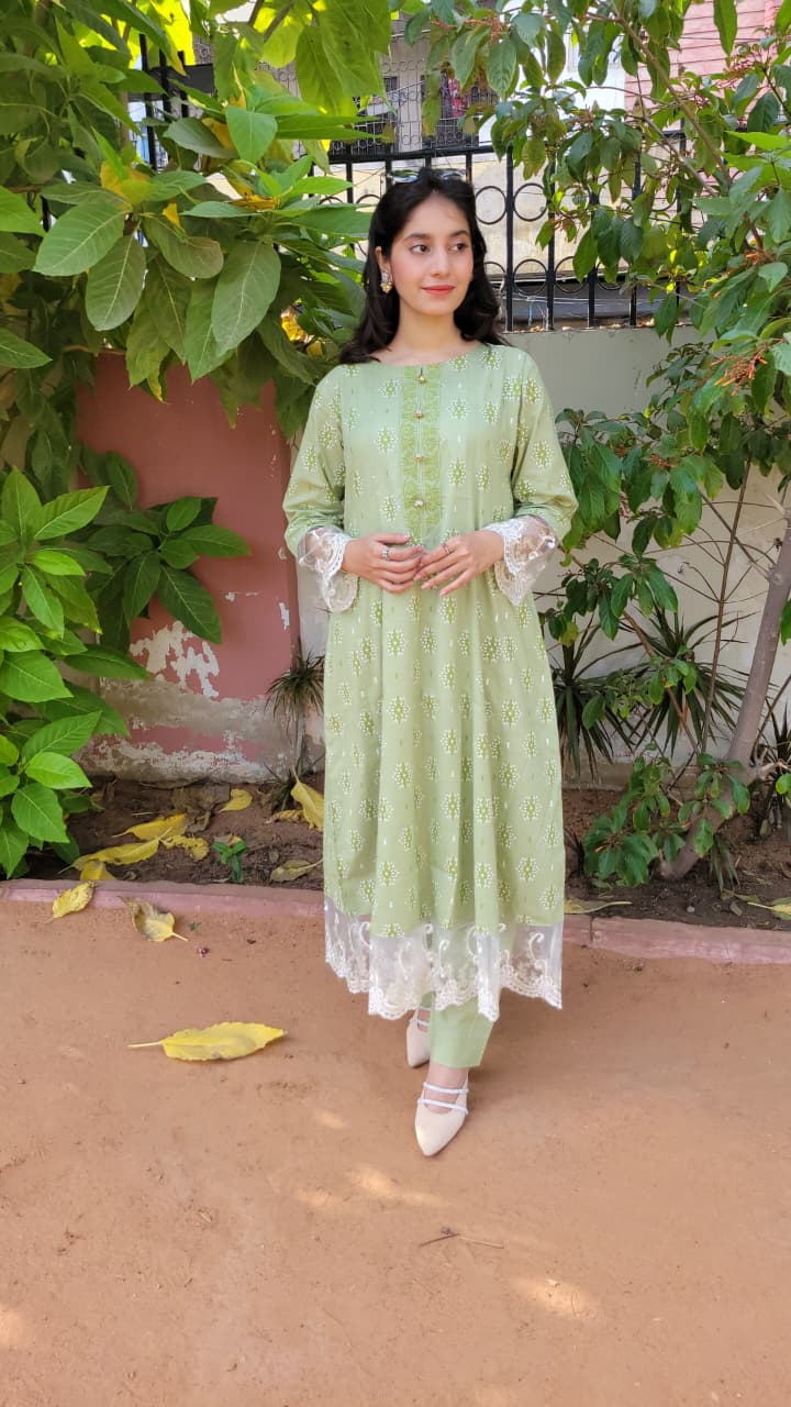 Radiate effortless elegance with our Sage Serenity embroidered lawn kurta — a timeless piece designed for comfort and grace. Crafted from premium-quality lawn fabric, this soft sage green ensemble is adorned with delicate white embroidery that captures the essence of understated sophistication.